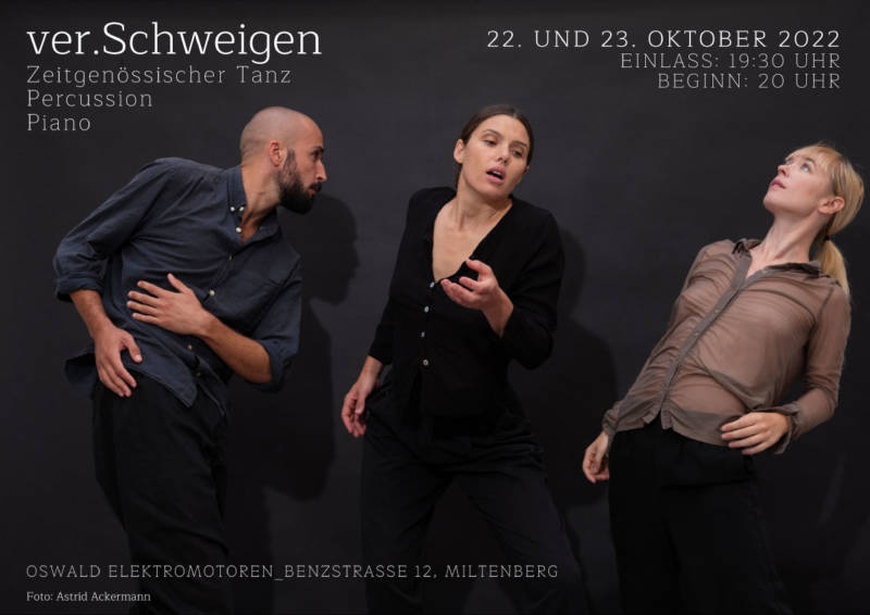 Zeitgenössischer TanzPercussionPiano Vielen Dank für Ihren Besuch! Mit dem Tanz- und Musikprojekt „Ver.Schweigen“ widmet sich Judith Nagel, Choreographin und Tänzerin, gemeinsam mit weiteren Künstler:innen der Bedeutung und den unterschiedlichen Dimensionen des Schweigens: Verschweigen als Verdrängung der Wirklichkeit, Schweigen als Enge. Aber auch: Schweigen als Raum, der für Stille geschaffen wird. Schweigen als Raum, in dem […]